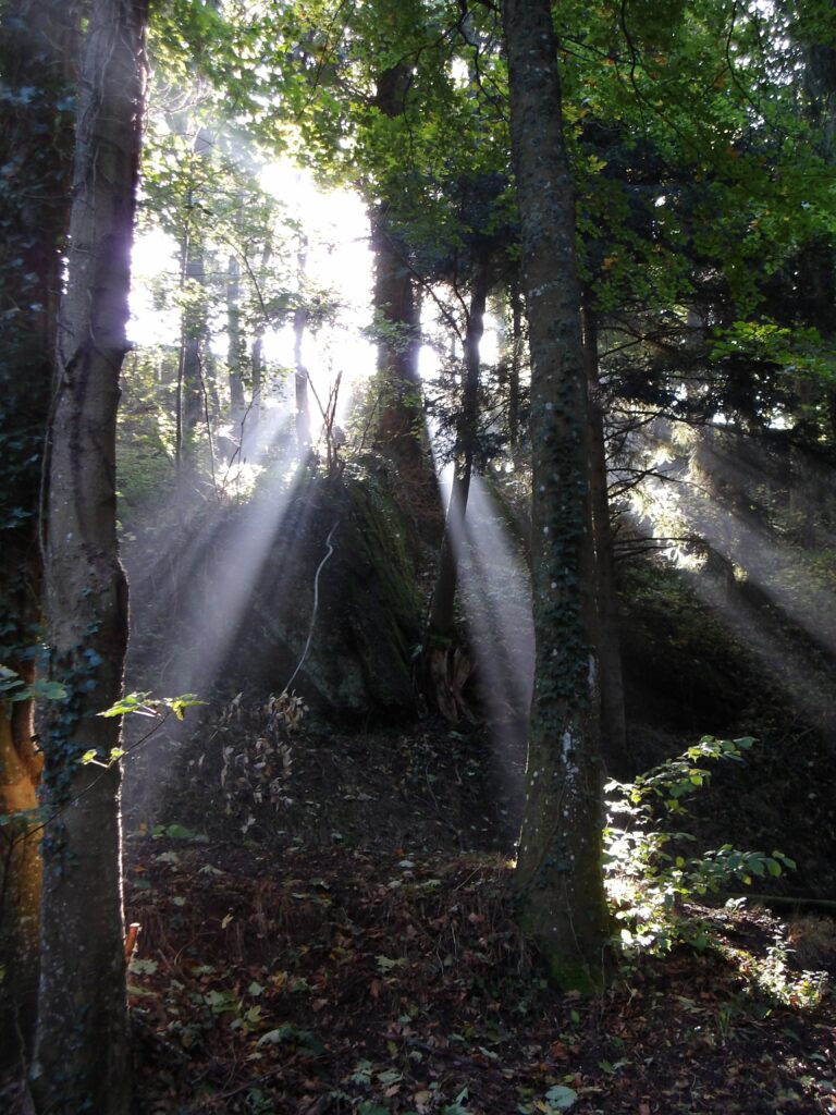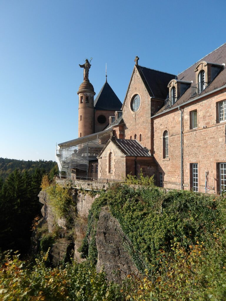 Nous avons bénéficié toute la journée d’un magnifique soleil, ce qui nous a permis de profiter d’une très belle vue sur les bâtiments du monastère ainsi que sur les forêts environnantes, parées de splendides couleurs automnales, et sur la plaine d’Alsace, sortant du brouillard. Pour nous mettre en appétit, Matthew a organisé une petite randonnée dans la forêt autour du monastère.